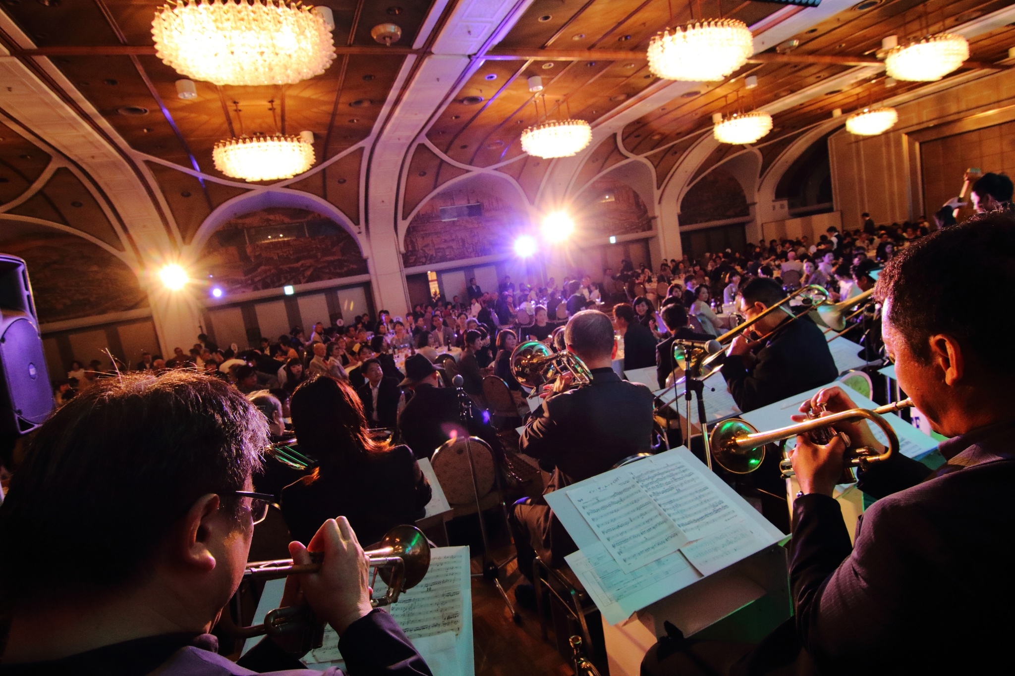 約2時間、ノンストップのジャズシャワー!今年2月に続き、今回は東京から外山喜雄とデキシーセインツを迎え、地元・長岡のブルーノートジャズ・オーケストラとの豪華競演が実現しました。客席中央にはダンスフロアが設置され、軽快なリズムに乗って紳士淑女が手を取り合ってダンスを楽しみました。